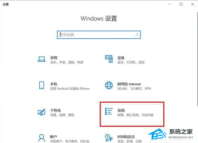 2、打开Windows设置界面中,我们点击“应用”;