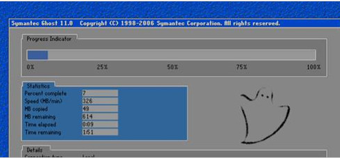 一般在开机时不停地按上下键然后选择进入还原程序开始还原。还原后自动重启进入桌面。