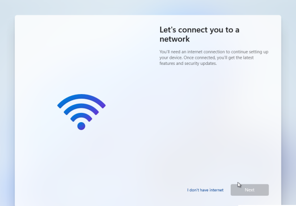 19.接下来会要求你联网,刚开始小编的虚拟机有网卡,会要求登录微软帐号,小爱断网直接创建了一个Win11本地用户。