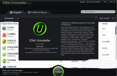 方法二:以IObit Uninstaller3为例,进行批量卸载(看软件安装日期,将同时安装的其他程序全部卸载),并进行强力卸载,然后让软件清理相关软件注册表和残余文件。