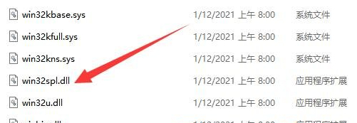 2、找到【win32spl.dll】文件,将它备份到其他位置去;