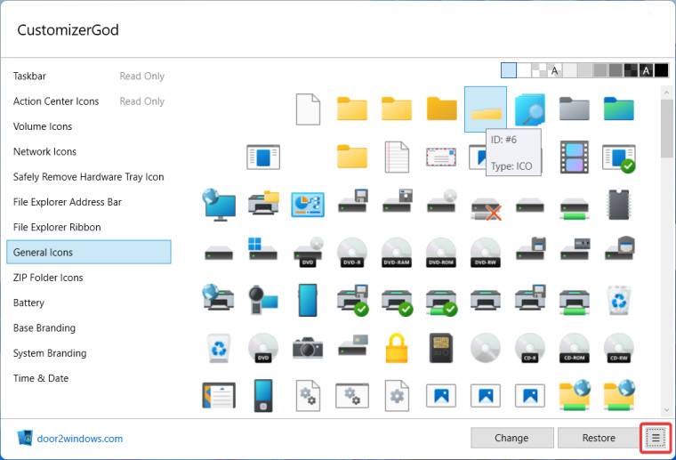 在ZIP 存档中下载 CustomizerGod 实用程序和自定义图标。
