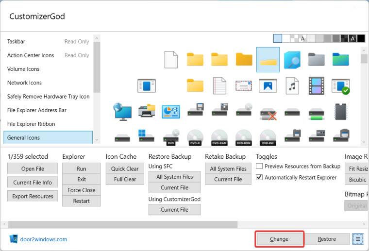 现在是时候将缩略图图标替换为新图标了。单击更改按钮。