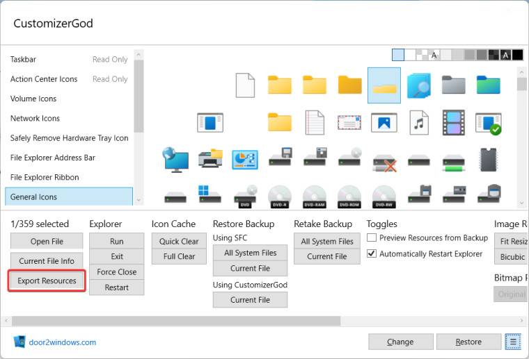 按导出资源创建原始图标的备份。如果要恢复库存缩略图,则需要备份。