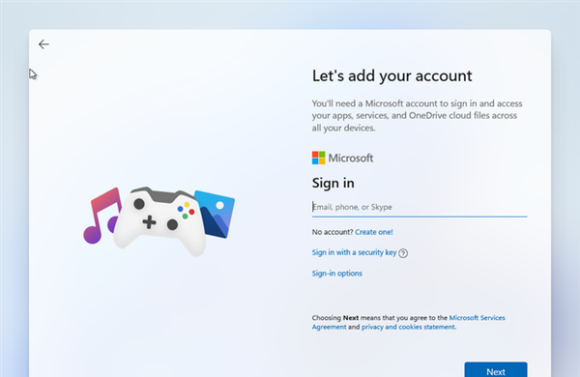 19.接下来会要求你联网,刚开始小编的虚拟机有网卡,会要求登录微软帐号,小爱断网直接创建了一个Win11本地用户。