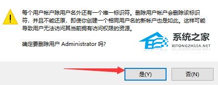 6. 然后在弹出界面选择“是”就可以删除管理员账户了。
