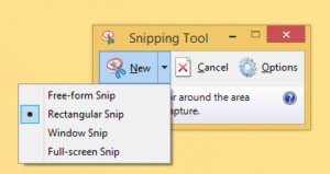 首先,单击“ 开始”按钮,键入snip,然后单击“ 狙击工具”。接下来,点击“ 新建”下拉菜单,然后选择所需的“片段”形状。