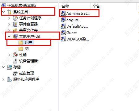 2、依次点击“系统工具—》本地用户和组—》用户”。