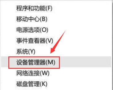 3. 在开始菜单按钮上单击鼠标右键,在弹出的菜单中点击“设备管理器”。