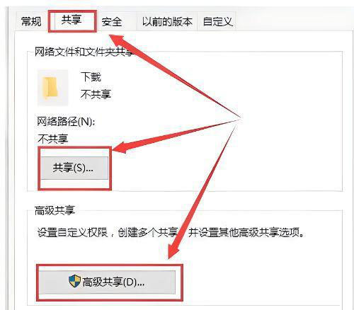 5. 在【共享】选项卡中,选择【共享】或者【高级共享】就行了,没有以前方便了。