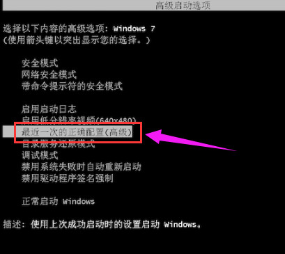 2、假如发生的蓝屏造成没法开机进系统,那麼能够先试着重启按F8等方式,进到安全模式菜单选择”近期一次的恰当配备“来试着启动系统。