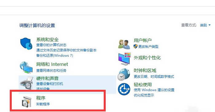 3、打开控制面板之后,在里面找到“程序”这一项,点击打开它。