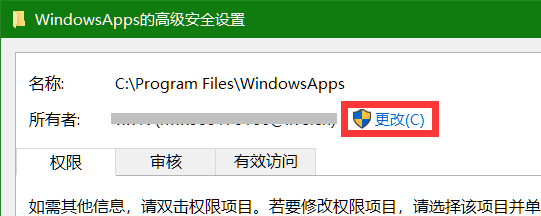 2.在打开的高级安全设置中,直接在所有者后点击“更改”。