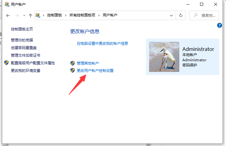 2、点击【更改用户账户控制设置】进入。