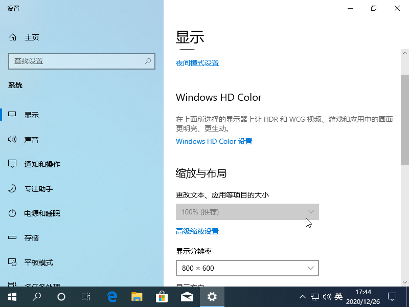 2、直接在桌面右键>显示设置,在“更改文本、应用等项目的大小”选择框中查看缩放比是多少,记住这个数字,我的是125%。