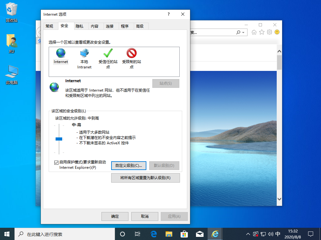 2、在打开的 Internet 属性安全窗口中,点击“自定义级别”按钮。
