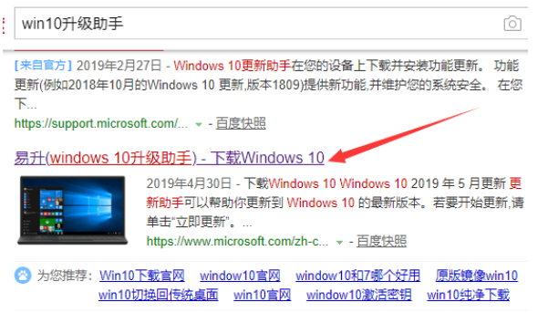 1、在浏览器中搜索win10升级助手。