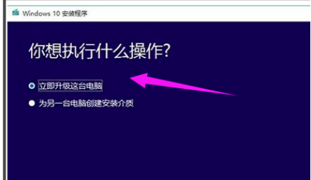 4、下载完成后,运行win10升级助手,出现Windows10安装程序窗口,单击以立即升级这台计算机,然后根据提示安装win10系统。