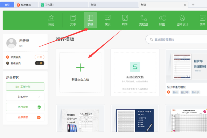 4. 等待安装进度完成,打开软件,点击新建,选择表格即可。