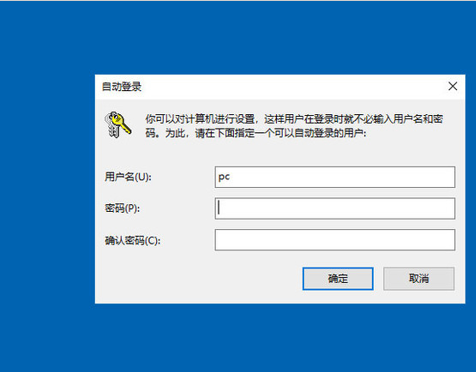 5、点击确定后,弹出自动登录对话框验证权限,输入用户名和密码点击确定,下次开机登录时就不需要密码了。