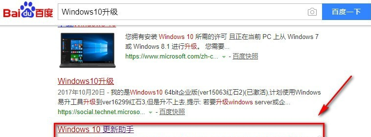 1、在百度搜索windows10更新助手,会搜出来很多,我们主要关注微软官网的就可以了。