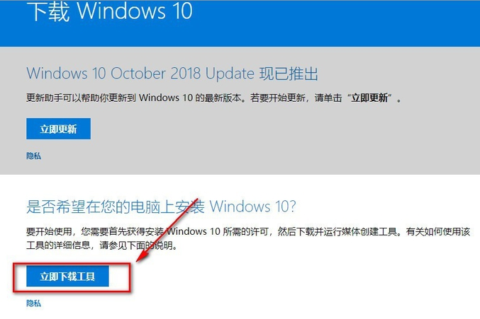 3、点击立即下载工具,下载可用的window10更新助手,当然也可以对自己的电脑进行win10更新。