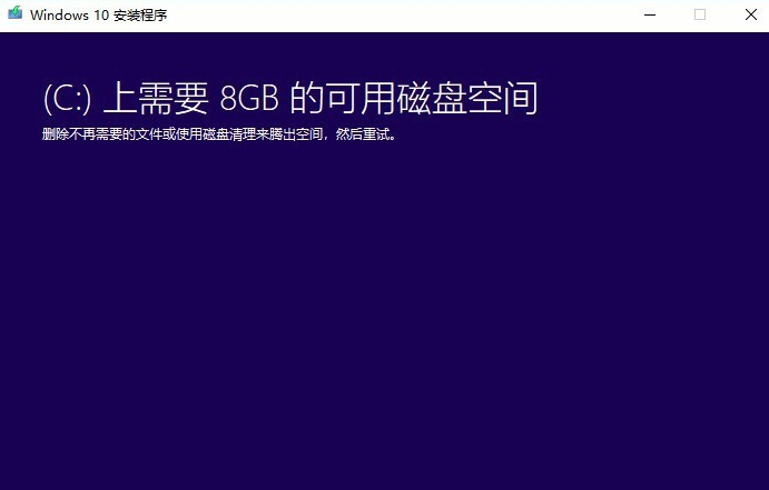 8、这里提示C盘的空间不足8GB,虽然我们下载的镜像可以装在其他位置,不过如果C盘空间不足的话也没法进行下一步,那我们就只好先清理一下咯。