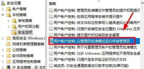 5、双击打开“用户账户控制:用于内置管理员账户的管理员批准模式”。