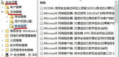 4、依次点击“安全账户-本地策略-安全选项”。