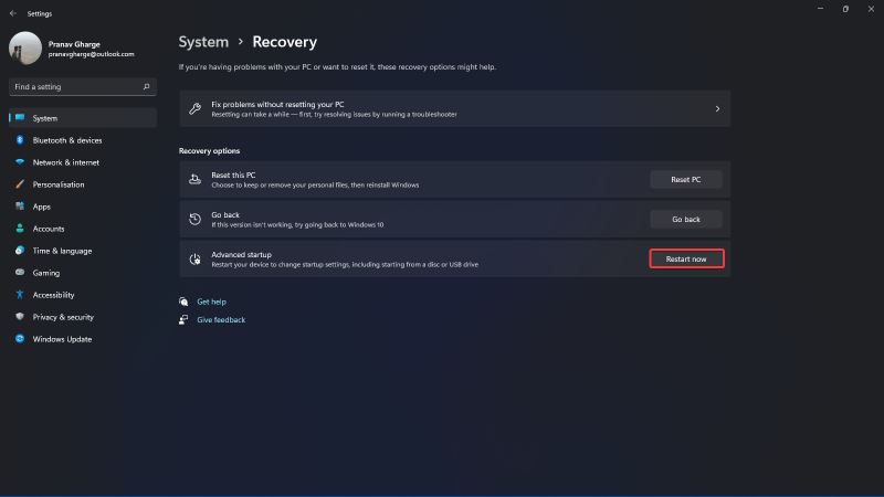 执行命令后,您的系统将重新启动 Windows 11 启动设置。