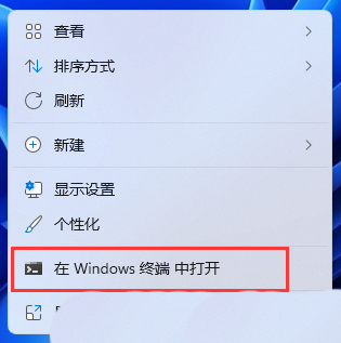 1、桌面右键点击空白处,在打开的菜单项中,选择在 Windows 终端 中打开;