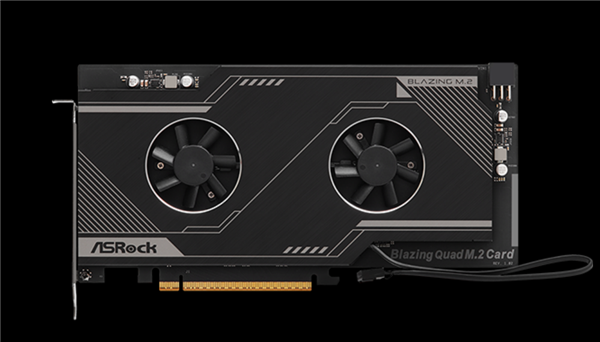 华擎被玩家公认为妖板之王,总是能出一些让人眼前一亮/黑的新奇产品,没想到在SSD扩展上也有如此秀的一面,他们推出了Blazing Quad M.2扩展卡,支持PCIe 5.0 x16接口,最多可支持4块PCIe 5.0的SSD硬盘。