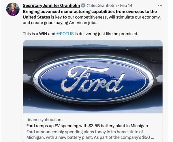 美国佛罗里达州共和党参议员马尔科·卢比奥(Marco Rubio)公开表示,此次合作“这只会加深美国对中国电池技术的依赖”,并致信给美国财政部长叶伦(Janet Yellen)、能源部长格兰霍姆(Jennifer Granholm)和运输部长布塔朱吉(Pete Buttigieg),呼吁美国海外投资委员会(CFIUS)立刻审查宁德时代和福特的这宗交易。