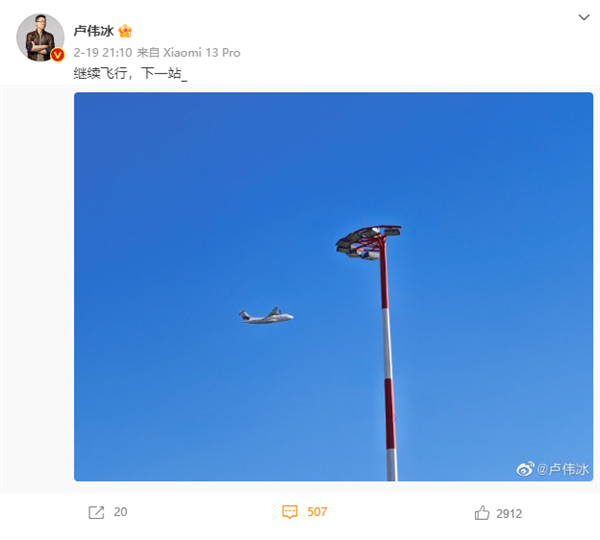 值得注意的是,卢伟冰此前发布动态“继续飞行,下一站”,并配上了一张飞机图片,应该是卢伟冰已经动身飞往巴塞罗那了,提前准备MWC 2023相关事项,有可能会由卢伟冰主持小米13系列海外的发布会。
