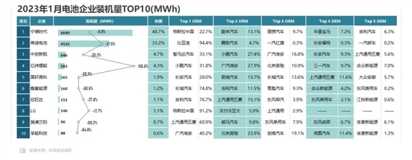 而亿纬锂能,在AION S新款车型电池搭载后装机量有所增长,增加188.8%,成为1月TOP10企业中增幅最高的电芯企业。