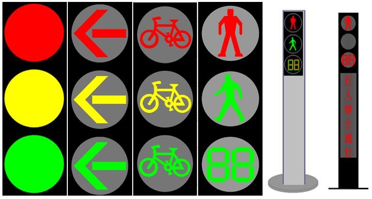 道路交通信号灯系列产品,包括满屏信号灯、箭头信号灯、非机动车信号灯、人行信号灯、一体式信号灯等。信号灯符合GB 14887-2011《道路交通信号灯》标准。倒计时显示器符合GA/T 508-2014《道路交通信号倒计时显示器》标准。