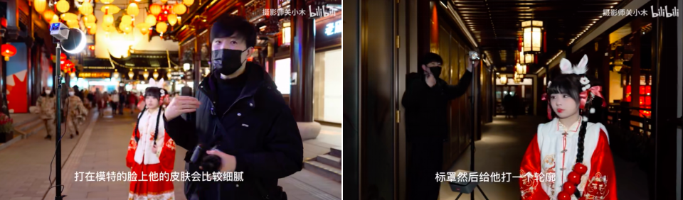 夜间人像拍摄非常讲究控光技巧,通过控光附件可以对光质、光型等进行控制,柔和的光线能让肌肤更加唯美动人,暖光则能营造温馨氛围感。“摄影师关小木”将智云迷你灯罩、迷你柔光箱、柔光球等附件应用于人像摄影,“丰富的附件让我能够随意控光,拍摄夜景人像时我用柔光球给模特补光,根据环境在2700K至6500K之间调节色温,打出的柔和暖光更能凸显皮肤细腻感;用智云标准罩在模特身后打出轮廓光,将人物与背景分离,增加画面层次感,配合古风服装、道具及人物造型,即使在夜间也能拍出温馨古风人像大片。”
