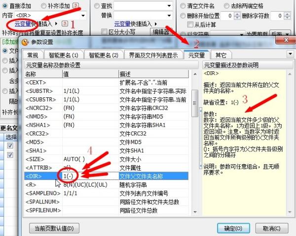 数字:返回当前文件多少级的父文件夹名称,1为返回上1级,3为返回3级。(1 就是你要修改的那个文件的父文件夹名称。2 就是祖父文件夹名称,3 就是曾祖父文件夹名称。)