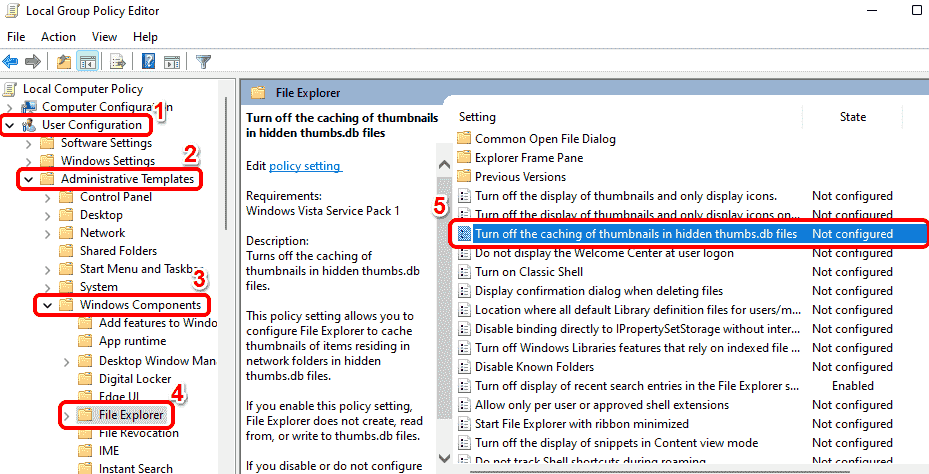 第 3 步:在关闭隐藏的 thumbs.db 文件中缩略图的缓存属性窗口中,选择对应于选项Enabled的单选按钮。