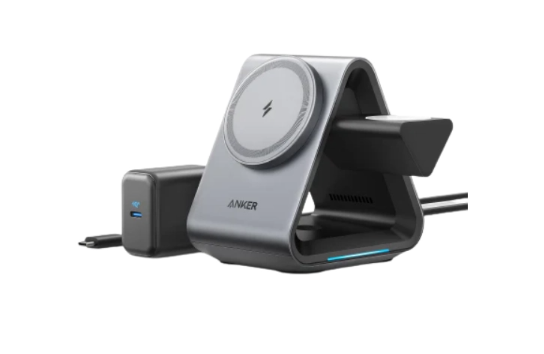 据本站了解,Anker在推出这款三合一充电器前,曾经推出过MagSafe充电器,这次推出的MagGo充电器则是在这个基础上进行了升级。MagGo充电器采用MagSafe磁吸技术,不仅可以为iPhone提供无线充电,还可以固定设备,防止意外脱落。