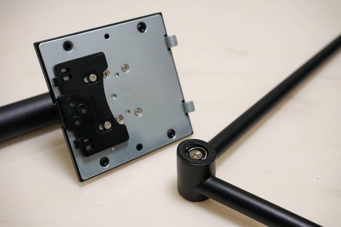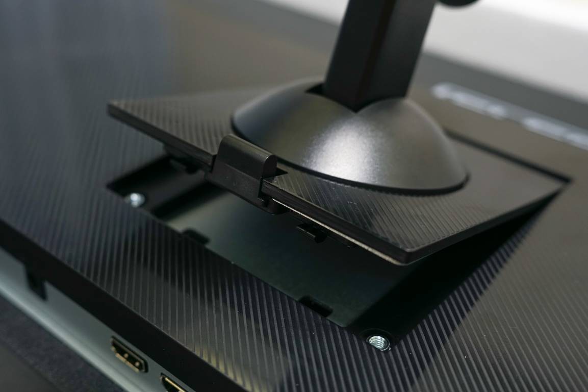 显示器的底座为全免工具安装的设计,安装起来简单便捷,就算是不太熟悉电脑的朋友都可以自己动手组装。