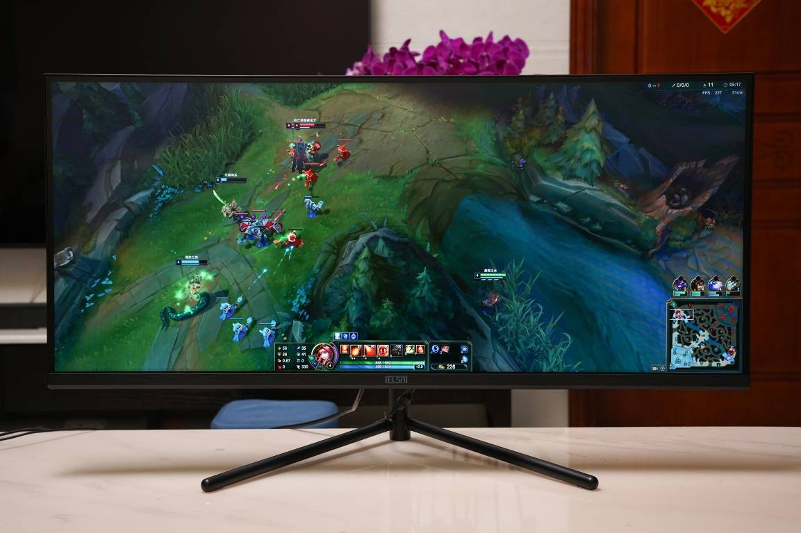 在《英雄联盟》当中,艾尔莎34G1也是充分展现出了高分21:9的优势,游戏内超广画面可以让我们即使观察到地图上下位置的情况,无论是抓人还是防抓都有得天独厚的优势,加上显示器拥有120Hz刷新率和FreeSync技术,画面流畅度方面也是足够流畅,走位和连招都可以一气呵成。