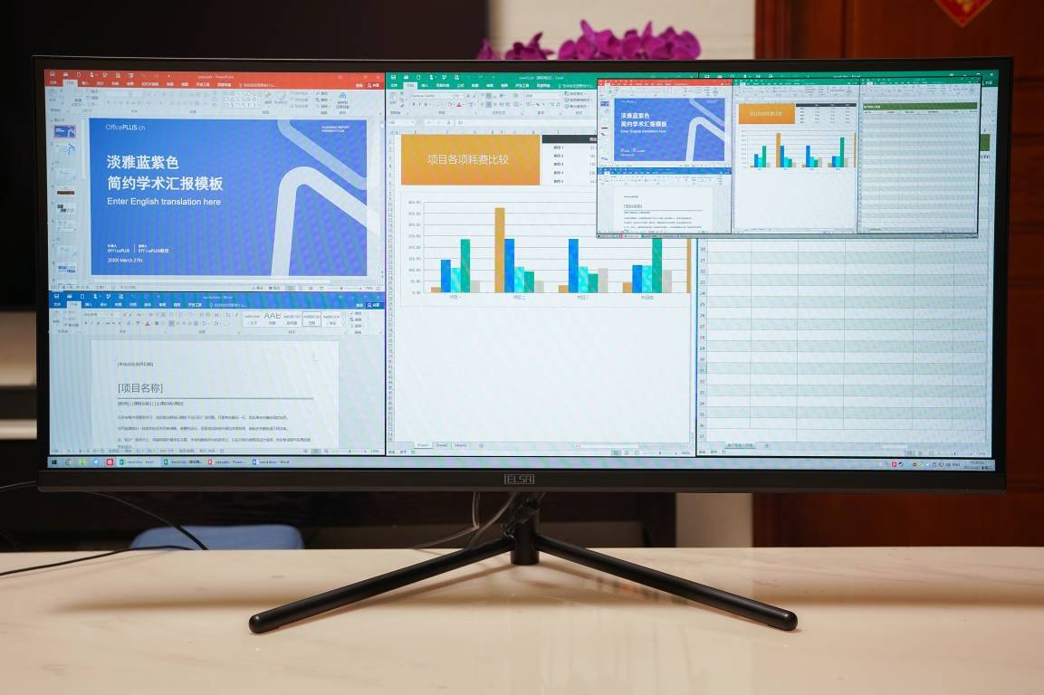 在日常办公方面,艾尔莎34G1的21:9准4K分辨率可以提供更多的显示空间,尤其是多文件同屏操作的时候,更高的分辨率和更大的显示面积可以让工作更加游刃有余,生产力效率大大提高。