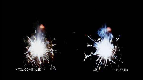 几乎和它并驾齐驱的第二名TCL,同样黑得下去、没有发灰,而且黑夜中的火花、亮得更为璀璨,综合表现力可以说极佳。
