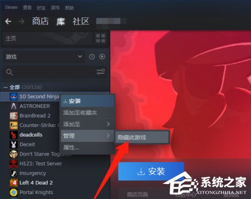 6、steam库中将看不到该游戏。只要多多隐藏一些不游玩的游戏,steam库的打开速度就会变快。用户们可以根据自己的实际需求进行设置。