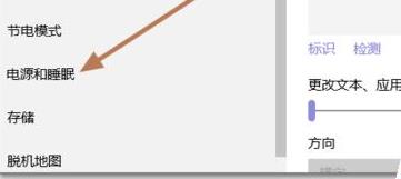 3、点击左侧任务栏中的“电源和睡眠”。