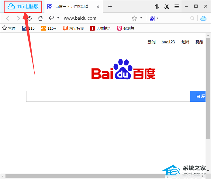 2、登录完毕后在 115 浏览器的左上角点击" 115 电脑版",如下图所示。