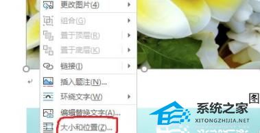 2、选中图片后,用鼠标右击,这时会弹出下拉菜单,点击“大小和位置”选项。