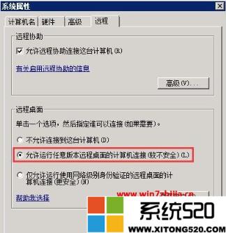 3、选择“允许运行任意版本远程桌面的计算机连接”这个选项,然后保存确定!
