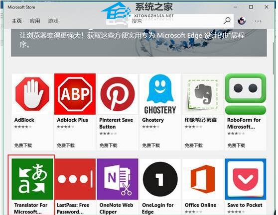 3、找到“Translator for Microsoft Edge”,点获取进行安装。